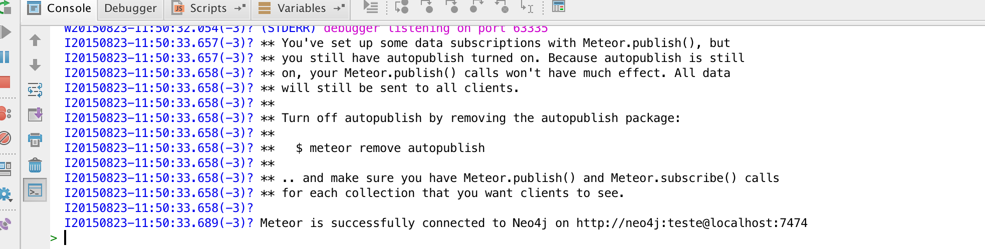 Finish. Now start your application. You have now a meteor project running with neo4j database.