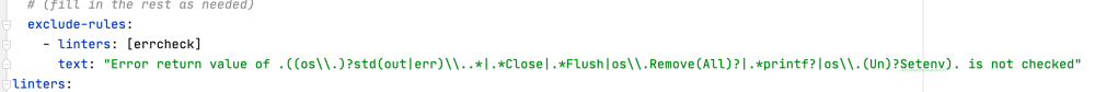 Also, you can perform configurations in the .golangci.yml to ignore directories, files and etc. Also, it can be very specific such as; for the check N in the files A,B,C ignore the errors with “X” see: